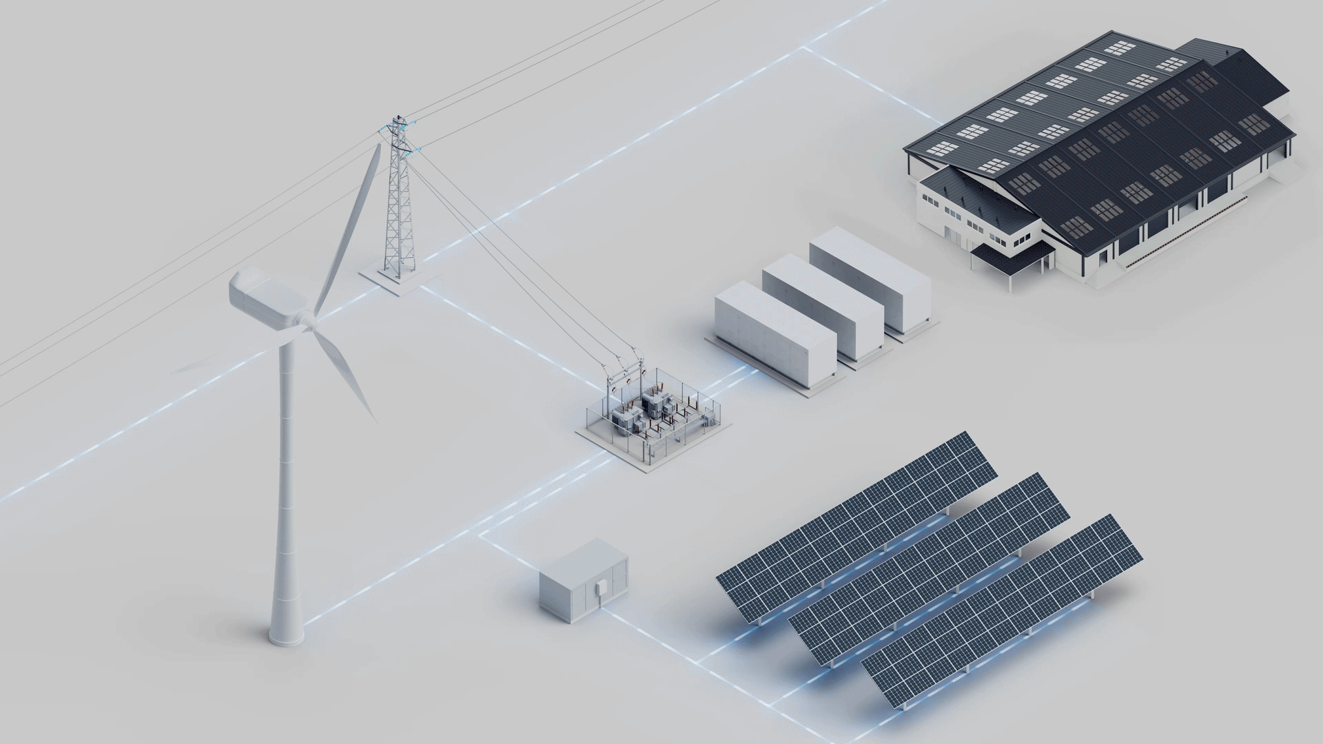 Interconnected power grid, futuristic background.